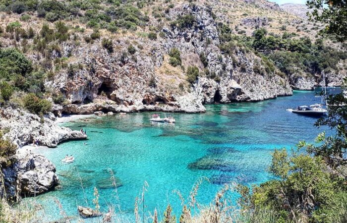 The path that we propose starts from the panoramic viewpoint of Ciolandrea and arrives at the Bay of Marcellino, one of the most beautiful beaches of the Cilento Coast. Stretch of coastline that is part of a protected marine area of special landscape and natural value: the natural area of the coast of the Infreschi and Masseta. The route allows us to cross one of the most spectacular and wild natural landscapes of the Mediterranean Sea, full of cliffs, coves, isolated beaches and numerous karst caves. The return is by boat.